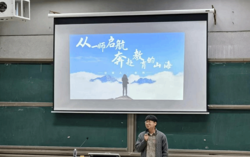 讲座伊始,佘祎老师回溯了自己在一师的求学岁月,为同学们规划大学征程提供了切实指引,也让大家清晰认识到,大学四年是遨游知识瀚海、开启逐梦之旅的黄金阶段。紧接着,他向同学们推介并解读了大学期间能够提升综合能力、积累实践经验的各类团队活动,特别点明支教与教师技能大赛,称其对师范生的成长有着不可替代的深远价值。最后,佘老师分享了自己实习、见习时的点滴故事,以切身感悟寄语同学们:当你感到诸事缠身、压力在肩时,正是自己在默默成长与蜕变的过程。