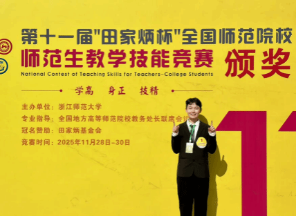 为期三天的第十一届“田家炳杯”全国师范院校师范生教学技能竞赛决赛于2025年11月30日在浙江师范大学圆满落幕,我院谢俊豪同学荣获小学组全国二等奖。