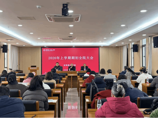 2026年3月6日上午,初等教育学院召开全院教职工大会,部署新学期重点工作。学院党委书记李宣平、副院长唐文杰、副院长李汉学及全体教职工参加会议。会议由李宣平主持。