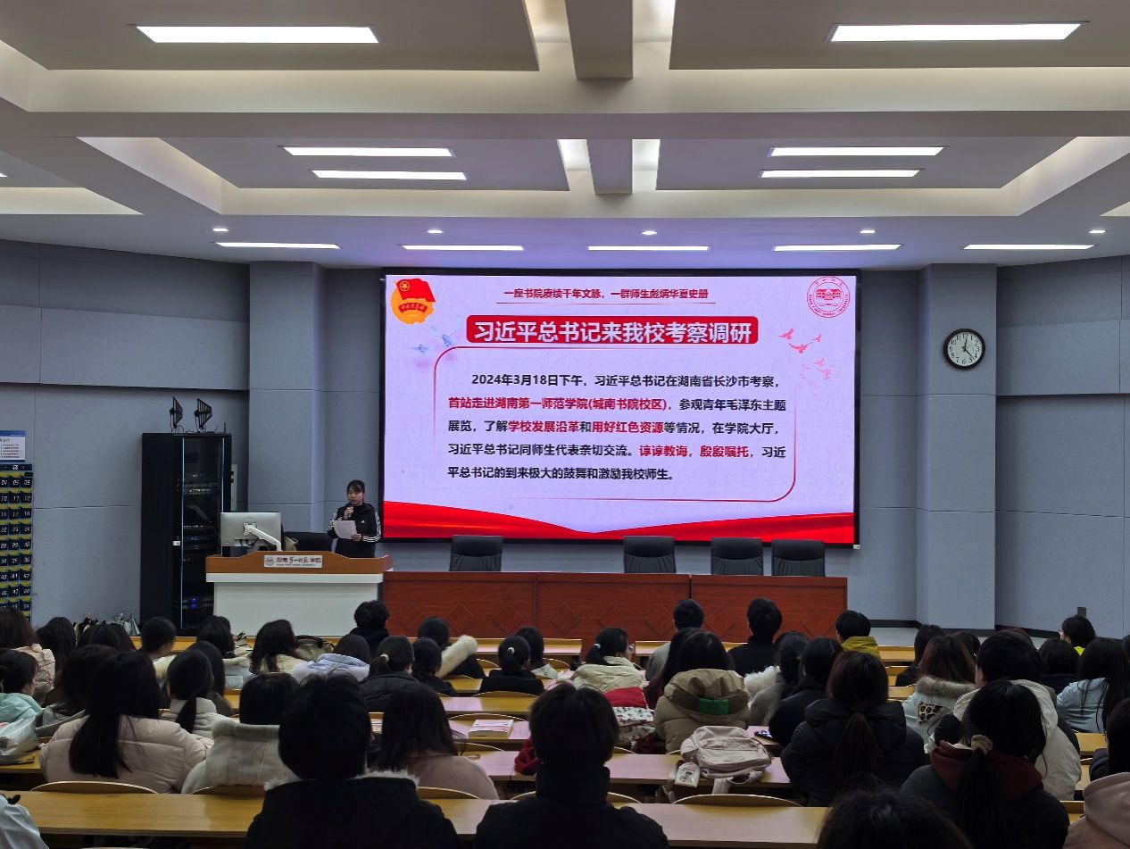 活动伊始,全体师生怀着崇敬的心情重温了习近平总书记考察我校时的重要讲话视频。大家聚精会神,认真聆听总书记的谆谆教诲,深情回顾总书记在城南书院校区考察时的动人场景。视频中,习近平总书记指出“一师是开展爱国主义教育、传承红色基因的好地方”,强调“学校的办学宗旨,既要提高学生的文化素质,又要引导学生立志报国”。师生们重温了总书记关于“利用好红色资源,上好‘大思政课’”的重要指示,从“要做人民的先生,先做人民的学生”的校训阐释中,深刻领会教育的真谛。大家一致表示,要牢记总书记“立报国强国大志向”的殷殷嘱托,深刻感悟“千年学府、百年师范”的红色底蕴,进一步明晰新时代师范生立德树人的育人使命,从总书记的重要讲话精神中汲取奋进力量,努力成为堪当强国建设、民族复兴大任的栋梁之才。